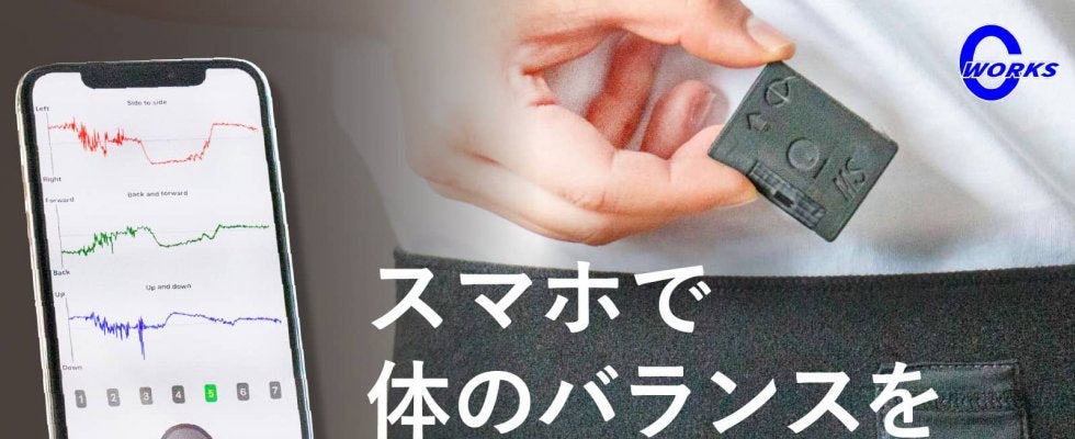 まずは、測定用デバイス「MS」を、付属のベルトを使って、測定したい体の位置に固定します。専用アプリから測定をスタートすると、体の動きにあわせて上下、縦横、左右のバランスがグラフで表示されます。