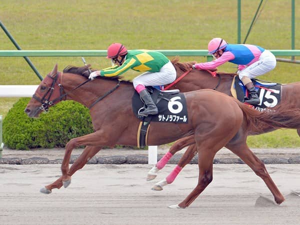 そこで筆者が狙いたいのが、サトノラファール(牡3歳/栗東・中竹和也厩舎)だ。同馬は前走の端午S(京都/ダート1400m)を強烈な追い込みで差し切るなど、今年3月の4戦目から1400m戦を2戦して2勝。デビューから3戦まではダートの1800mを走り、デビュー戦(京都)こそ5馬身差で圧勝したものの、2戦目は5着、3戦目は11着と敗れているため、一見「距離短縮で本領発揮」と思えるかもしれない。