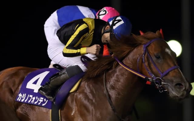 17日、船橋競馬場で行われた第23回京成盃グランドマイラーズ(3歳上・重賞・ダ1600m・1着賞金1200万円)は、好位の内でレースを進めた張田昂騎手騎乗の1番人気カジノフォンテン(牡4、船橋・山下貴之厩舎)が、逃げ粘る4番人気サルサディオーネ(牝6、大井・堀千亜樹厩舎)をゴール前で捕らえて抜け出し、これにクビ差をつけ優勝した。勝ちタイムは1分39秒2(良)。