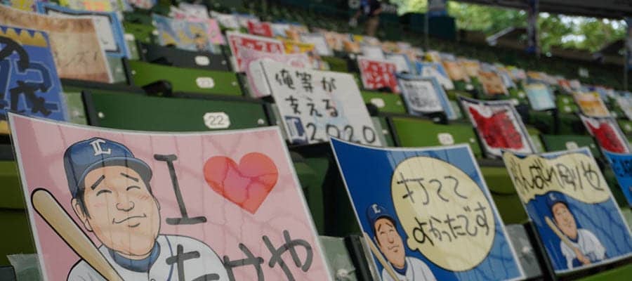西武が無観客スタンドに応援ボードを掲出! 縦読み「ドスコイ」などアイデア満載