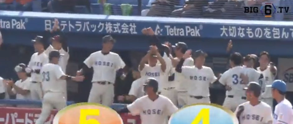 ■法政大vs東京大2回戦法政大 000 010 212=6東京大 102 000 000=4【法】高田孝、内沢、鈴木、柏…