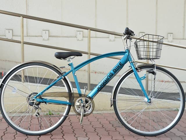 走行性能に優れたシティサイクル。ワイドタイプのカゴが付き、シンプルに作られ、無駄なく走れる。【参考】JOGGING BIKE サイクルスポットオリジナル 27インチ 適応身長150cm〜 外装6段変速 後輪はローラーブレーキ オートライト付き 29,980円(税抜)