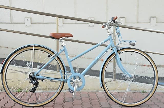 まずは日本で最もスタンダードな軽快車。ママチャリの代名詞とも言えるだろう。上半身をゆったり構えても乗れるU字ハンドルが付き、トップチューブはまたがりやすいスローピング(傾けられたもの)タイプ。後部の車輪横にはスカートを巻き込まないスカートガードが付いたものが多い。キャリア付きで、荷物が多い方は後部にもカゴを取り付けることができる。比較的、近距離での買い物などの荷物を運ぶ乗り方に最適な自転車だ。