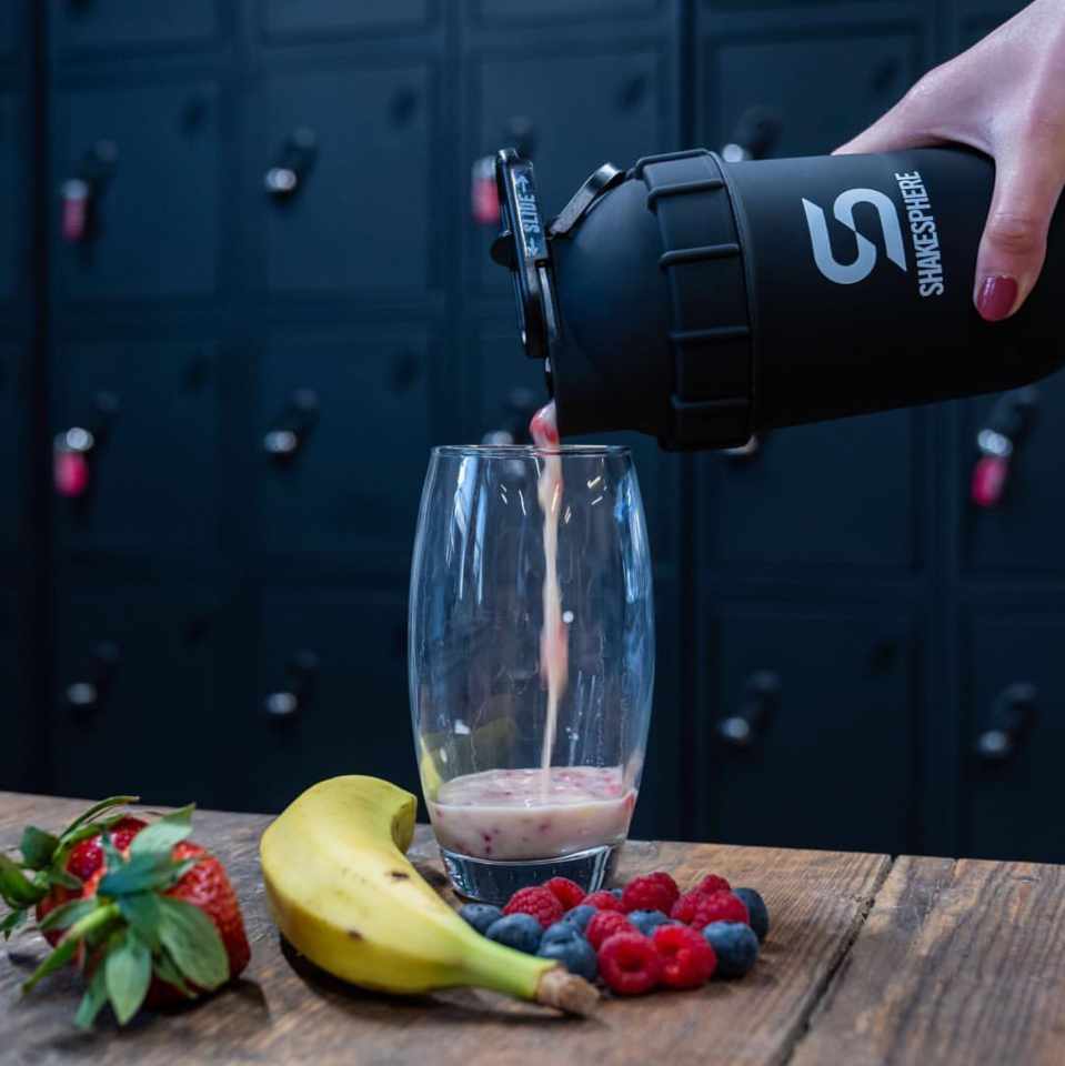 ShakeSphereは、プロアスリートが設計した特許取得デザインのプロテインシェイカーで、カプセル形状の見た目が特徴。