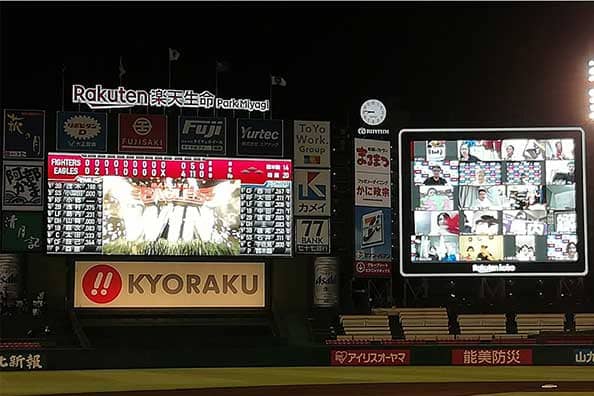 楽天は、無観客試合期間中すべての主催試合またはホームゲームにおいて、オンライン応援イベント「ファイト イッパーツ! オンライン応援わしほールーム supported by リポビタンD」を開催。楽天の提案するスタジアム内のビジョンやテレビ中継とも連動した新たな観戦スタイルを実際に体験してみた。