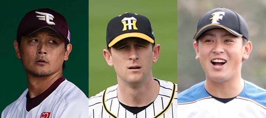 楽天・涌井秀章、阪神のジョー・ガンケル、日本ハム・河野竜生(左から)【写真:荒川祐史、石川加奈子】