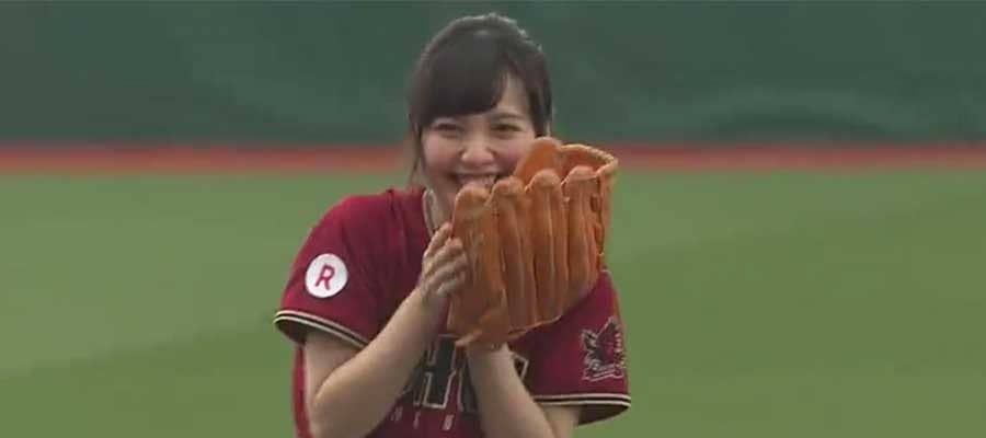 楽天ユニホームに白のスカートでマウンドに上がった山根千佳さんの一球は…