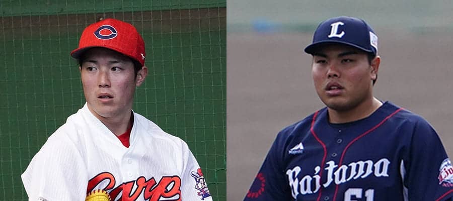広島・森下暢仁(左)と西武・平良海馬【写真:荒川祐史】