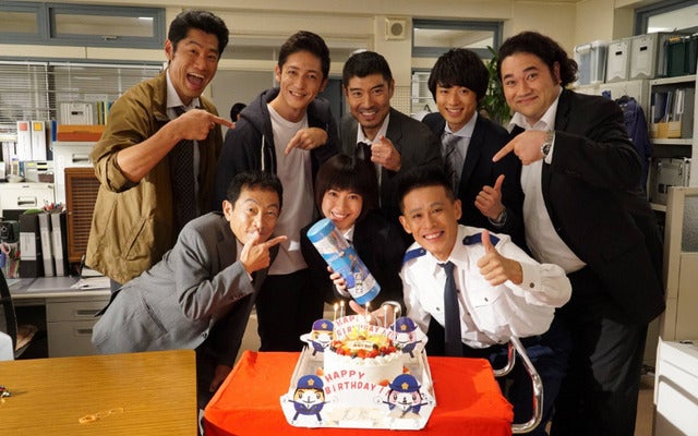 「スタッフ含めキャリアチームみんなでお祝い」というコメントとともに公開された写真は、瀧本を豪華メンバーが囲んでいる。さらに、コミカルヒューマン刑事ドラマらしく、“警察キャラケーキ”が登場。