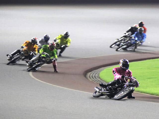 スタートを決めた4・黒岩明が1周回目で0ハンの1・廣瀬勝光を抜いて先頭に立つ。