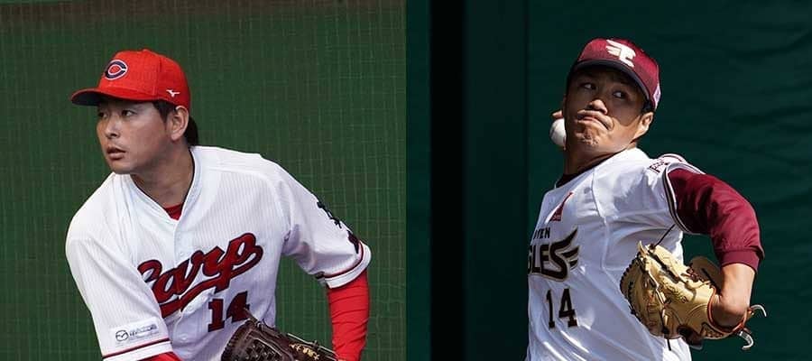 広島・大瀬良大地(左)と楽天・則本昂大【写真:荒川祐史】