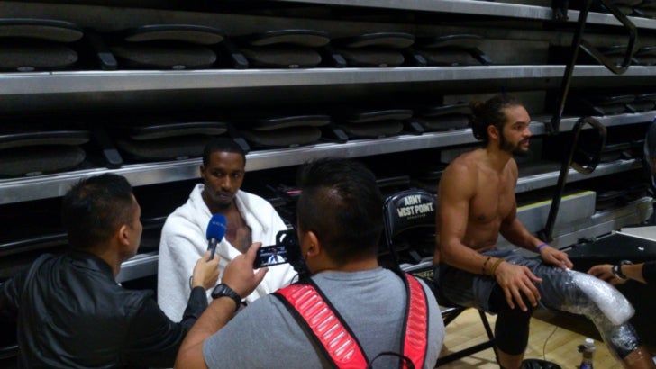 今回、ニックスのキャンプ始動は、ニューヨーク郊外のウェストポイント陸軍士官学校内のアリーナ。アメリカの陸軍ですから厳重な警備もあり、施設内に入るのは大変でした…何せ我々は外国人ですから。陸軍関係者の車輛でアリーナまで連れられた外国の取材陣はWOWOWとフランスのCanalだけだったと聞いています。しかし、場内はピリピリムードではなく、取材撮影はかなり自由(笑)。あれっ、ニックスはもっと厳しかったはずなのに…。ミニゲームも多くの時間を公開してくれて、さらに練習後も長澤さんの積極的な動きが功を奏し、主力選手の単独取材にも成功!フィル・ジャクソンGMもコートの横にいて、選手の動きを入念にチェックしていました。その模様はたっぷりと11/5(土)午前8:30~【スーパーサタデーDX!ニックスvsブルズ】の番組内でお届けします。ご期待ください。
