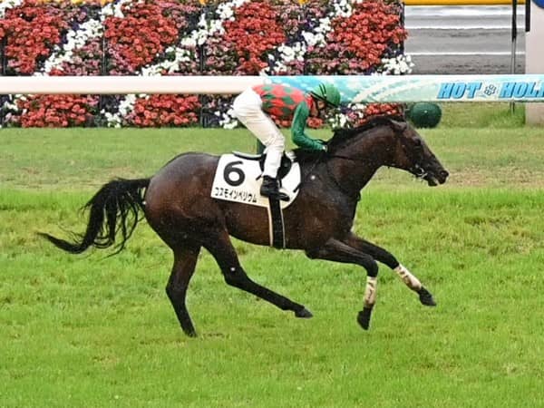 今年4月の未勝利戦(福島/芝2000m)を5馬身差の圧勝で初勝利。続く前走のカーネーションC(東京/芝1800m)では、上がり3F33秒3の鋭い差し脚と1分45秒9の好タイムで快勝した。