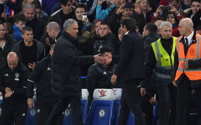 屈辱的な大敗を喫したマンチェスターUのジョゼ・モウリーニョ監督は、試合終了後にチェルシーのアントニオ・コンテ監督と握手を交わした際、耳元で何かをささやいた。英国メディアはチェルシーが4点目を奪ったあと、コンテ監督がホームの観客に「もっと拍手を」と要求したことへの抗議だろうとしている。