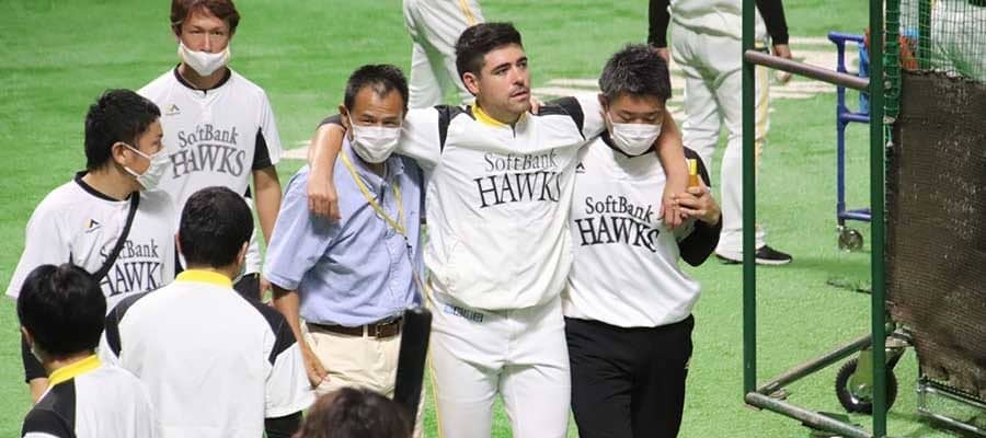 ソフトバンクのマット・ムーア投手が7日、楽天戦(PayPayドーム)の試合前練習中に負傷した。投手陣のウォーミングアップ中に左脚に異変を訴えた模様で、肩を担がれてベンチ裏へと姿を消した。