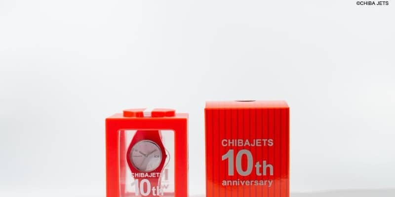 ICE-WATCH(アイスウォッチ)は、ベルギー発のファッションウォッチ。今回、同ブランドと会社設立10年を迎えた千葉がコラボレーションウォッチを制作した。千葉のクラブカラージェッツレッド(赤)をベースに、シンプルなデザインに仕上がっている。また、文字盤やパッケージに10周年を記念した「10」をあしらい、裏蓋にはシリアルナンバーが入る特別仕様となっている。さらに、しなやかなシリコンラバーベルトと10気圧防水で、試合観戦時の着用にも最適。男女問わず着用可能な40mmのユニセックスサイズとなっている。