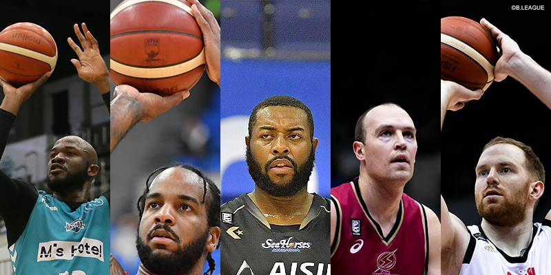 4位と5本差で5位になったのは、アルバルク東京のカーク。インサイドでの強さは群を抜いており、Bリーグ随一のフィニッシャーだ。シーズンを通して、1試合平均18.2得点、9.9リバウンドと“ダブルダブル”に近い成績を残した。