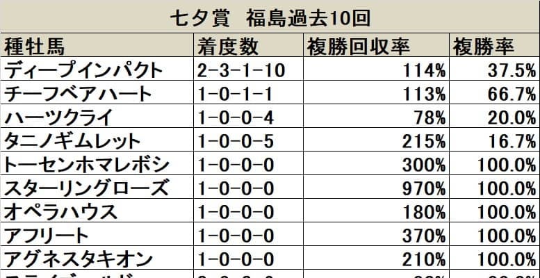12日に福島競馬場で行われる七夕賞(3歳上・GIII・芝2000m)について血統・種牡馬別に検証していく。なお、中山競馬場で代替開催された2011年はデータの集計対象外とした。