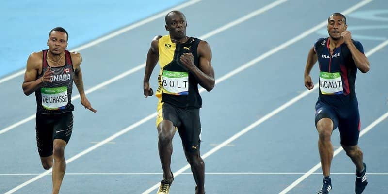 “世界最速の男”の称号をほしいままにしたウサイン・ボルト(ジャマイカ)の見せ場ですよね。上体が起き上がって疾走局面に入ったボルトは、まさに稲妻でした。