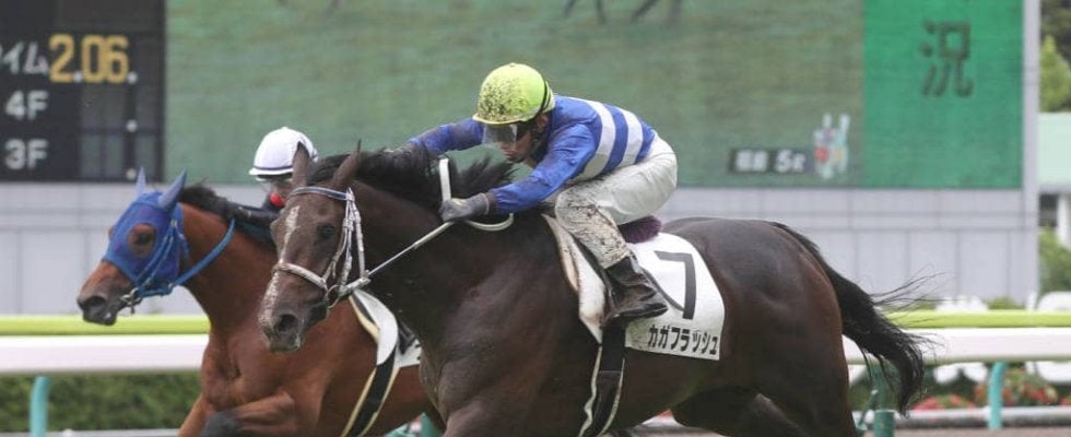 12日、福島競馬場で行われた5R・2歳新馬戦(芝2000m)で8番人気、江田照男騎乗、カガフラッシュ(牡2・美浦・萱野浩二)が快勝した。2馬身差の2着にソラフネ(牡2・栗東・中竹和也)、3着にフルネーズ(牡2・美浦・小笠倫弘)が入った。勝ちタイムは2:07.6(重)。