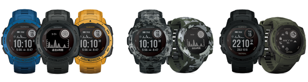 ラインアップは、「INSTINCT DUAL POWER」、「INSTINCT DUAL POWER CAMO EDITION」、ナイトビジョンやステルスモードなどのミリタリー機能を備えたタフネスモデル「INSTINCT DUAL POWER TACTICAL EDITION」、サーフィンアクティビティ機能を搭載した「INSTINCT DUAL POWER SURF EDITION」。