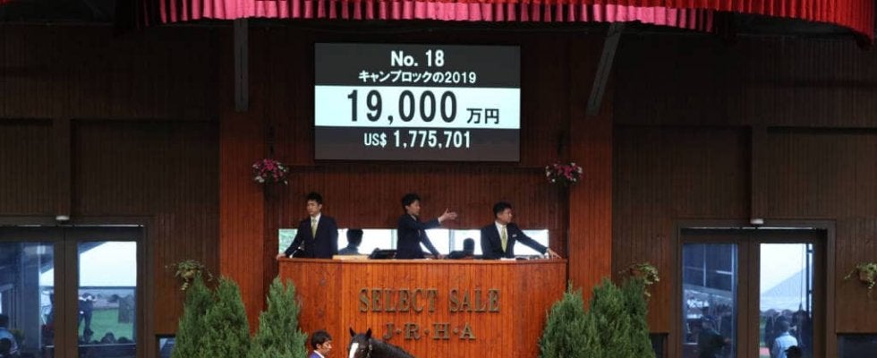 13日、北海道苫小牧にあるノーザンホースパークで、日本最大のサラブレッド市場「セレクトセール2020」が開催。1歳馬セールにて上場番号18番・キャンプロックの2019(牡)が1億9000万円で落札された。
