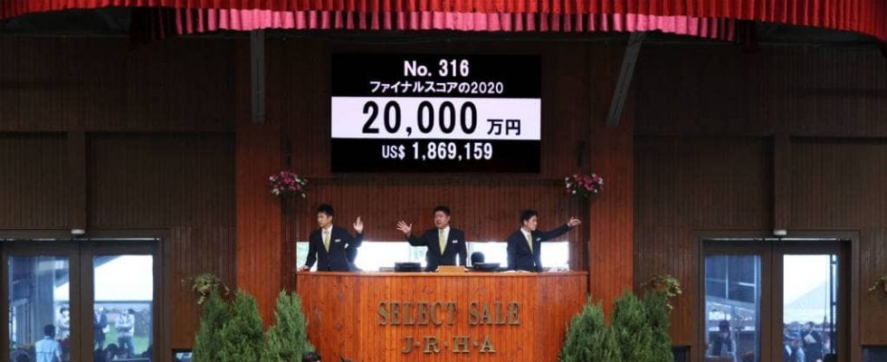14日、北海道苫小牧にあるノーザンホースパークで、日本最大のサラブレッド市場「セレクトセール2020」2日目が開催。当歳馬セールにて上場番号316番・のファイナルスコアの2020(牡)が2億円で落札された。