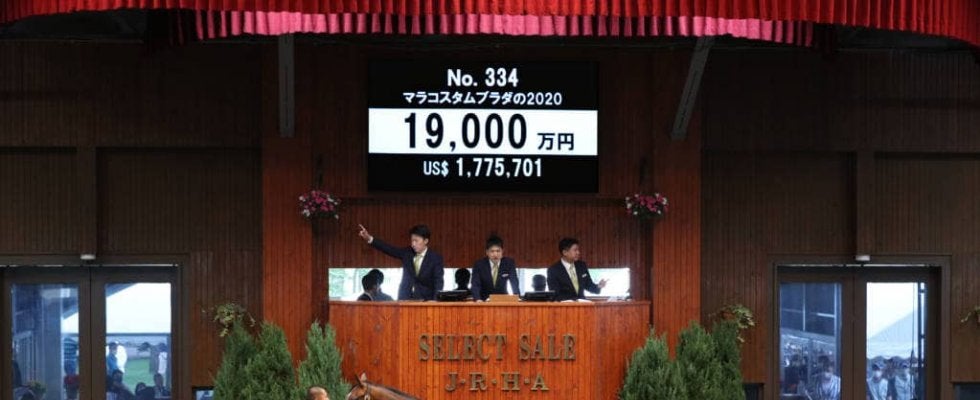 14日、北海道苫小牧にあるノーザンホースパークで、日本最大のサラブレッド市場「セレクトセール2020」2日目が開催。当歳馬セールにて上場番号334番・のマラコスタムブラダの2020(牡)が1億9000万円で落札された。