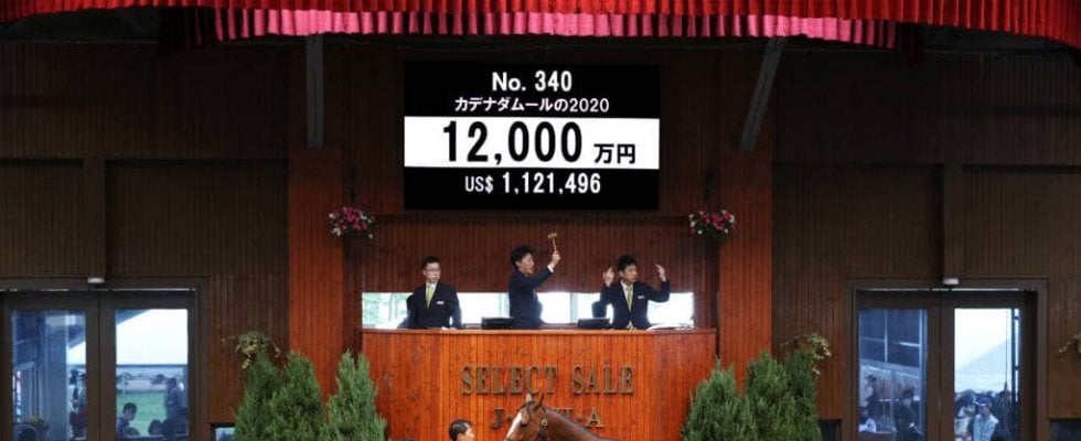 14日、北海道苫小牧にあるノーザンホースパークで、日本最大のサラブレッド市場「セレクトセール2020」2日目が開催。当歳馬セールにて上場番号340番・のカデナダムールの2020(牡)が1億2000万円で落札された。