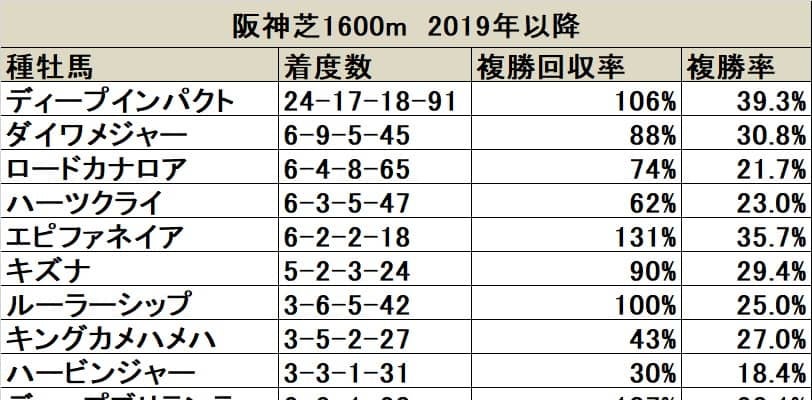 ステイゴールド産駒は「1-0-1-18」。こちらも直仔オルフェーヴルと同様に好走率自体は強調できる成績残していない。ただし、今回出走するソーグリッタリングは19年六甲Sを制しており、直近1年における唯一の産駒としての勝ち馬でもある。