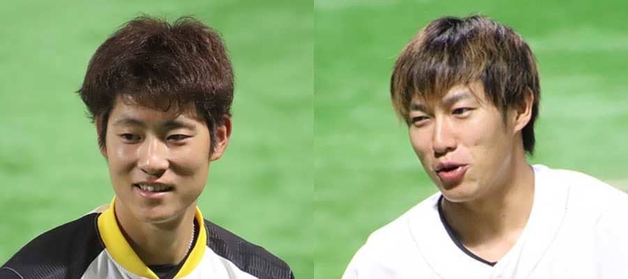 ソフトバンク・上林誠知(左)と柳田悠岐【写真:福谷佑介】