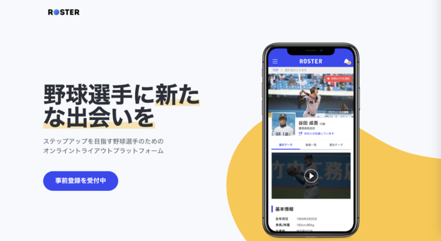 ROSTER運営事務局は、日本初となる野球選手向けオンライントライアルプラットフォーム「ROSTER(ロスター)」の事前ユーザー登録を開始した。