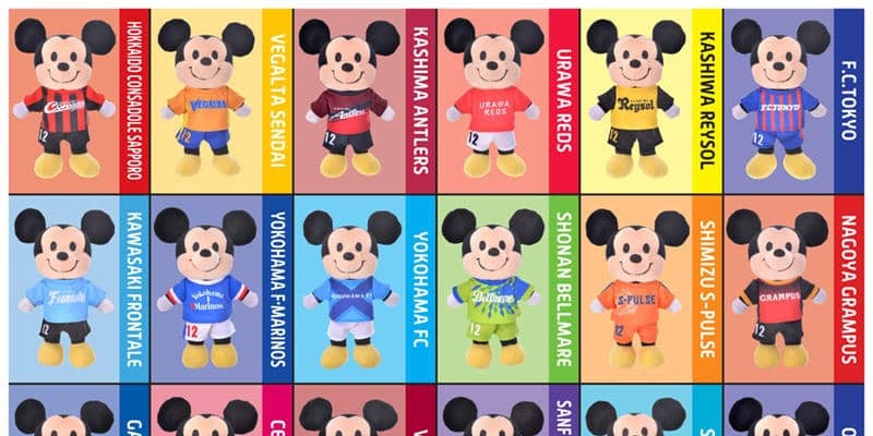 Jリーグオンラインストアや各クラブショップでは、ユニフォームを着たミッキーマウスぬいぐるみのセットを発売。ミッキー、ミニーともに3500円(税抜)で販売される。