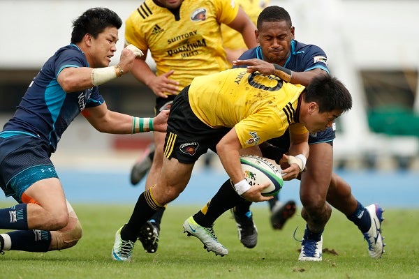 10月30日、東京・駒沢陸上競技場。クボタとの第9節を38-0と制した。仲間が突破するやその周りに素早く攻撃網を敷き、細かくパスをつなぐ。左右にボールが動いて相手防御がせり上がると見て、シャープな弾道のキックを放つ。状況を見る目や仲間の声を聞く耳も活用し、堅実にタクトを振った。