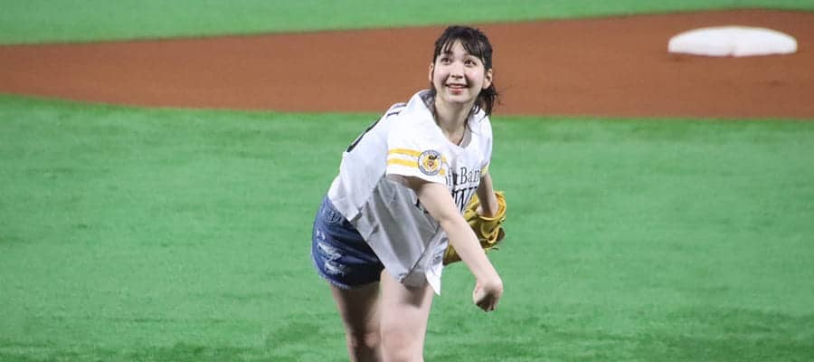 やや緊張した様子で投じた一球は、大きな弧を描いたあとグラウンドを転々とし捕手のミットに収まった。マウンドを降りるとマスコットキャラのハリーホークから再びマスクを受け取った松岡さん。開幕、有観客試合と段階を経て久々の解禁となった始球式に、スタンドのファンからは歓声は控えめながらも大きな拍手が送られた。