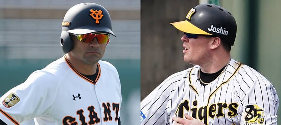 巨人のヘラルド・パーラ(左)と阪神のジャスティン・ボーア【写真:荒川祐史】