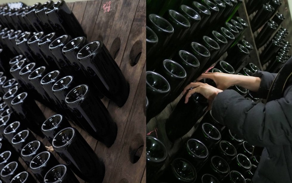 サミットの乾杯酒に提供された、シャンパーニュ地方と同じ瓶内二次発酵で造られたスパークリング・ワインがある。つまり瓶の中で発酵を進めてきめ細やかな泡を作っていくのだが、オリ(ワインの中の沈殿物)が出るのでそれを除去する必要がある。しかし、瓶をただ逆さにしておくのでは不十分で、傾けた瓶を、毎朝毎晩45°ずつ回し、瓶の内側についた細かいオリを落としていかないといけないのだそうだ。多いときで2000本、3000本の瓶をひたすら朝晩に回す、このルミアージュという作業。早くて1ヵ月、数ヵ月かかるときもあるのだという。なんだか気が遠くなりそうだ。
