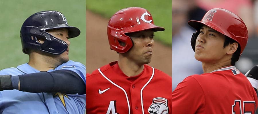 レイズ・筒香嘉智、レッズ・秋山翔吾、エンゼルス・大谷翔平(左から)【写真:AP】