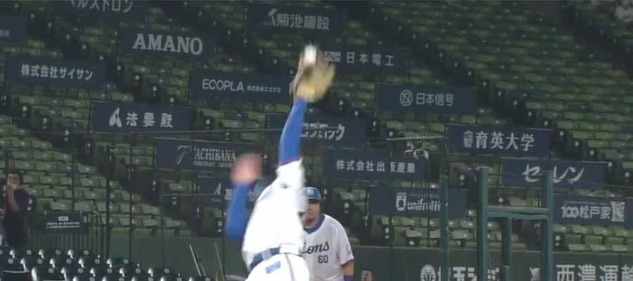 西武與座が「マトリックスキャッチ」 ピッチャー返しの超速反応にファン絶賛