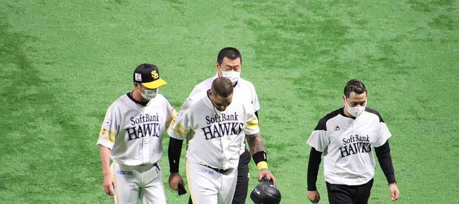 鷹バレンティンがアクシデントで負傷交代 自打球が左足の爪先に直撃