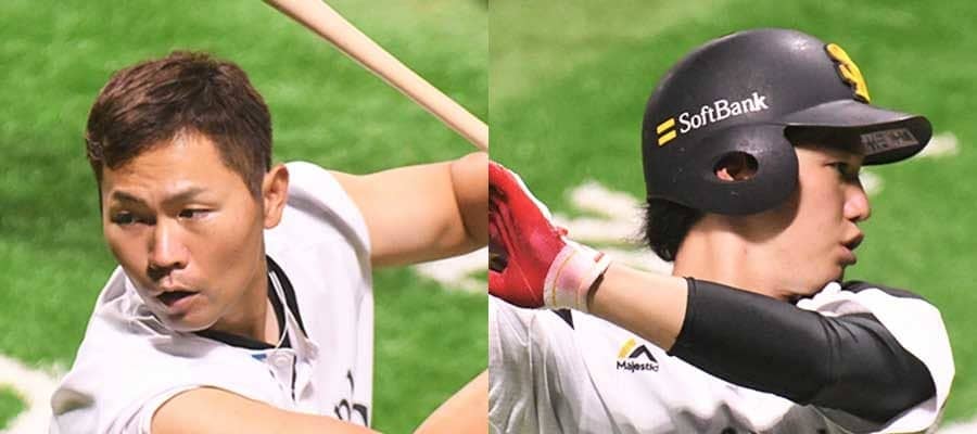 ソフトバンク・中村晃(左)と栗原陵矢【写真:藤浦一都】