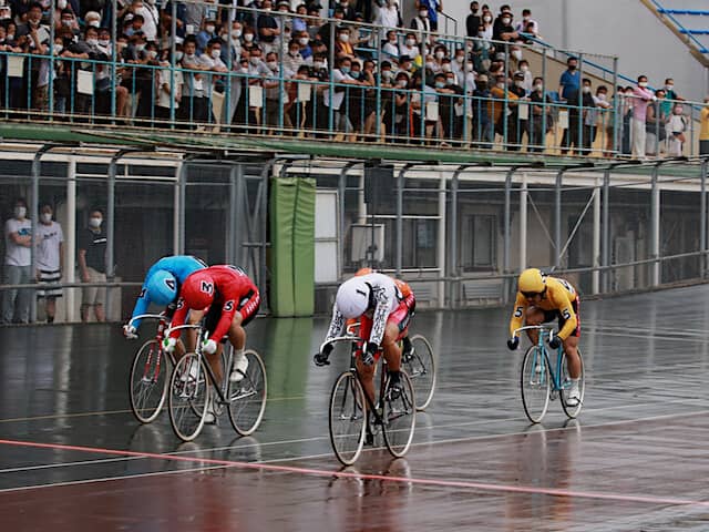 そして、脇本ー松岡ー東口の3車が中部勢と並走になったところで打鐘。