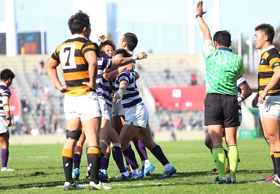 ラストプレーはペナルティートライ。川尻竜太郎レフリーは、慶大の自陣ゴール前でのディフェンスが故意のオフサイドで、それがなければ紫紺のジャージーがトライラインを越えたと判断した。土壇場で29-29と追いついた明大は、途中からピッチに立った森田澄がコンバージョンを決めて31-29と逆転勝利を得た。