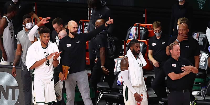 8月7日(現地時間6日)、ミルウォーキー・バックスとマイアミ・ヒートのシーディングゲーム(順位決定戦)が行われ、バックスが130-116で勝利。前半はヒートが試合の主導権を握り、最大23点差のリードを広げる場面も見られた。しかし後半はこの日33得点を叩き出したクリス・ミドルトンや、ウェスリー・マシューズらの3ポイントシュートなどの活躍もあり、最終クォーター残り7分55秒にブルック・ロペスのフリースローで逆転。ヒートは試合時間残り4分58秒からしばらく得点できず、その間にバックスはリードを広げて試合を制した。