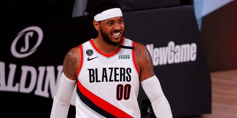 8月10日(現地時間9日、日付は以下同)に行われたフィラデルフィア・セブンティシクサーズ戦。ポートランド・トレイルブレイザーズのカーメロ・アンソニーが20得点7リバウンド2スティール1ブロックをマークして124-121の勝利に貢献。