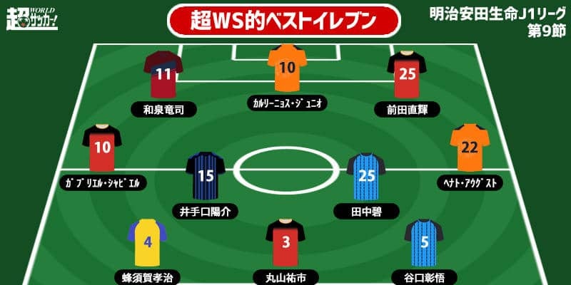 明治安田生命J1リーグ第9節の9試合が8日と9日に開催された。超WS編集部が今節の各試合で印象に残った選手を選りすぐり、ベストイレブンを紹介する。