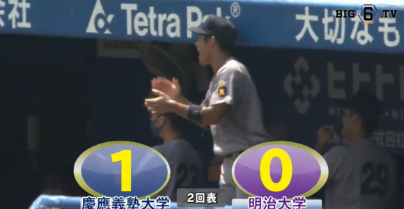 9回裏に明大がパスボールで1点を返すも、慶大が攻守ともに明大を圧倒し勝利を飾った。