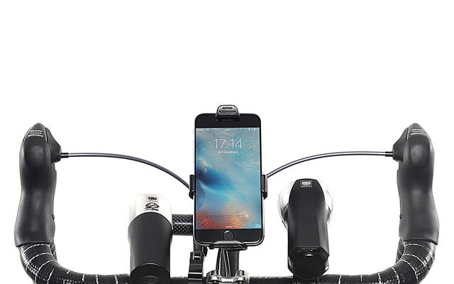 サスペンションのバネは2種類用意。衝撃の度合いに合わせ、サスペンション部分を外して入れ替えられる。バー部分は軽量&頑丈なカーボン製。ハンドル径22.2mm~31.8mmに対応する。耐荷重450g。スマートフォンホルダー・スマートフォン・自転車用ライトを同時に設置できる。サイズは約W100×D110×H52mm。重量約94g。5537円(税抜き)。