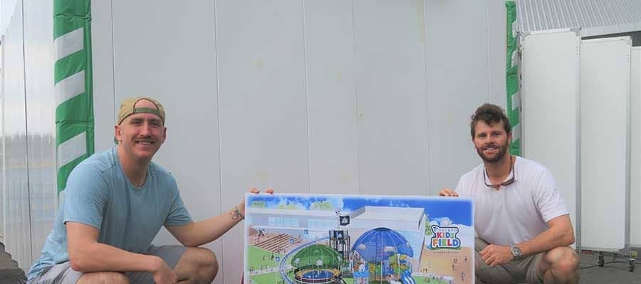 カゴいっぱいにレオ人形をはじめ、大量のライオンズグッズを詰め込んだ右腕は、満足そうな表情。そして、ギャレットがフラッグスに行く途中で目を輝かせたのが、来年3月にオープンする「テイキョウキッズフィールド」の建設地になる場所だった。