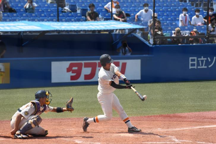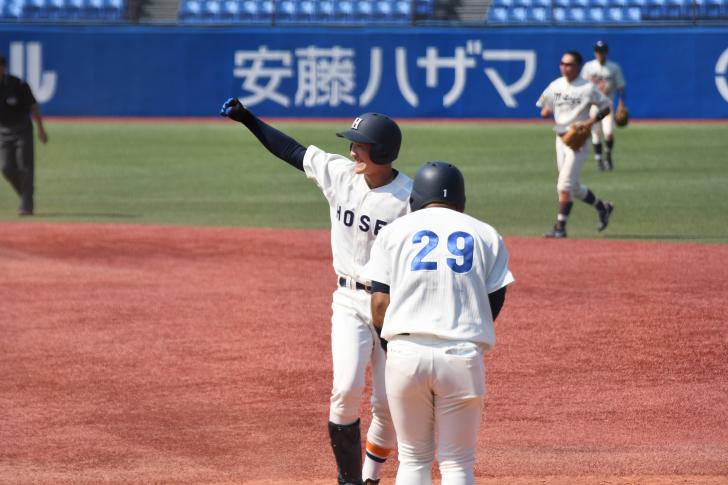 前の大柿(廉太郎、法2)がバントでチャンスを広げてくれたり、ベンチからの大きな声も聞こえていたのでなんとしてでも打とうと思っていました。